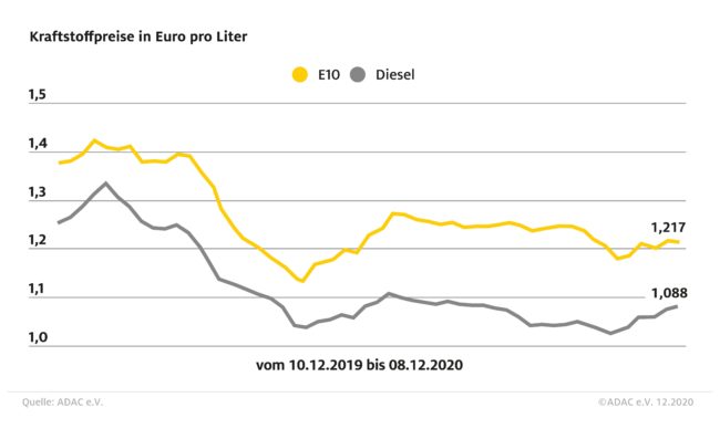 Benzin etwas billiger, Diesel teurer – ADAC: Preise für beide Sorten nähern sich um gut einen Cent an