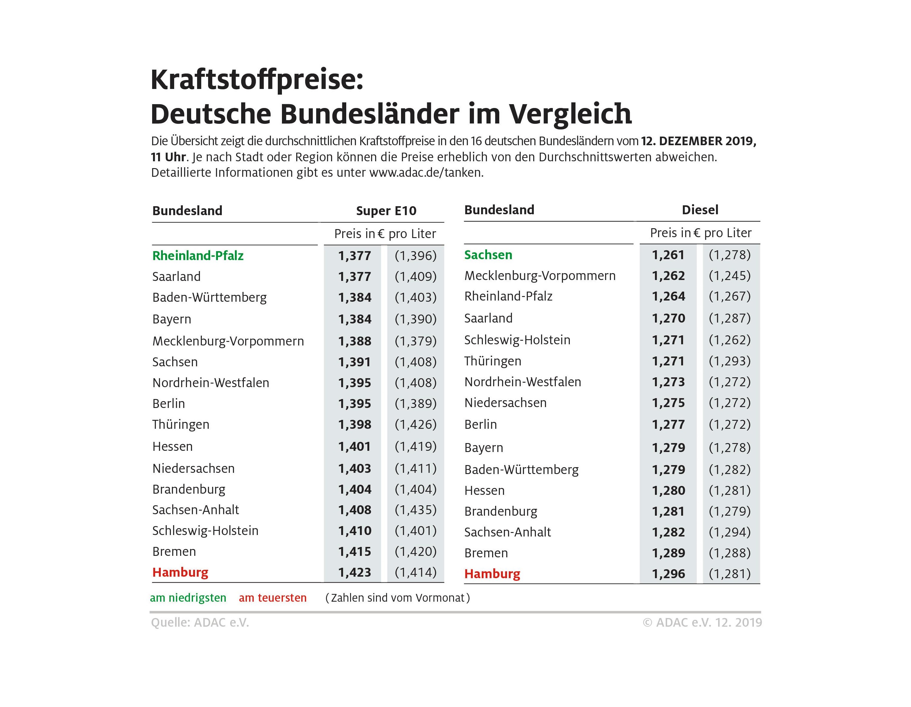 In der aktuellen Untersuchung hat der ADAC am heutigen Dienstag um 11 Uhr die Preisdaten von mehr als 14.000 bei der Markttransparenzstelle erfassten Tankstellen ausgewertet und den Bundesländern zugeordnet. Die ermittelten Preise stellen eine Momentaufnahme dar. Unkomplizierte und schnelle Hilfe für preisbewusste Autofahrer bietet die Smartphone-App „ADAC Spritpreise“. Ausführliche Informationen rund um den Kraftstoffmarkt gibt es zudem unter www.adac.de/tanken.