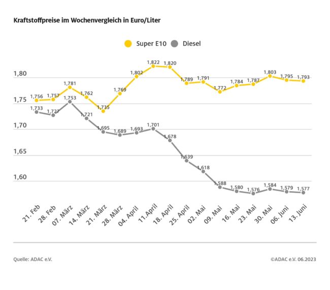 München (ots) – Die Preise an den Zapfsäulen in Deutschland sind im Vergleich zur vergangenen Woche leicht gesunken. Laut aktueller ADAC Auswertung der Kraftstoffpreise kostet ein Liter Super E10 im bundesweiten Mittel 1,793 Euro, das sind 0,2 Cent weniger als in der Vorwoche. Diesel ist ebenfalls um 0,2 Cent billiger und kostet aktuell 1,577 Euro.  …
