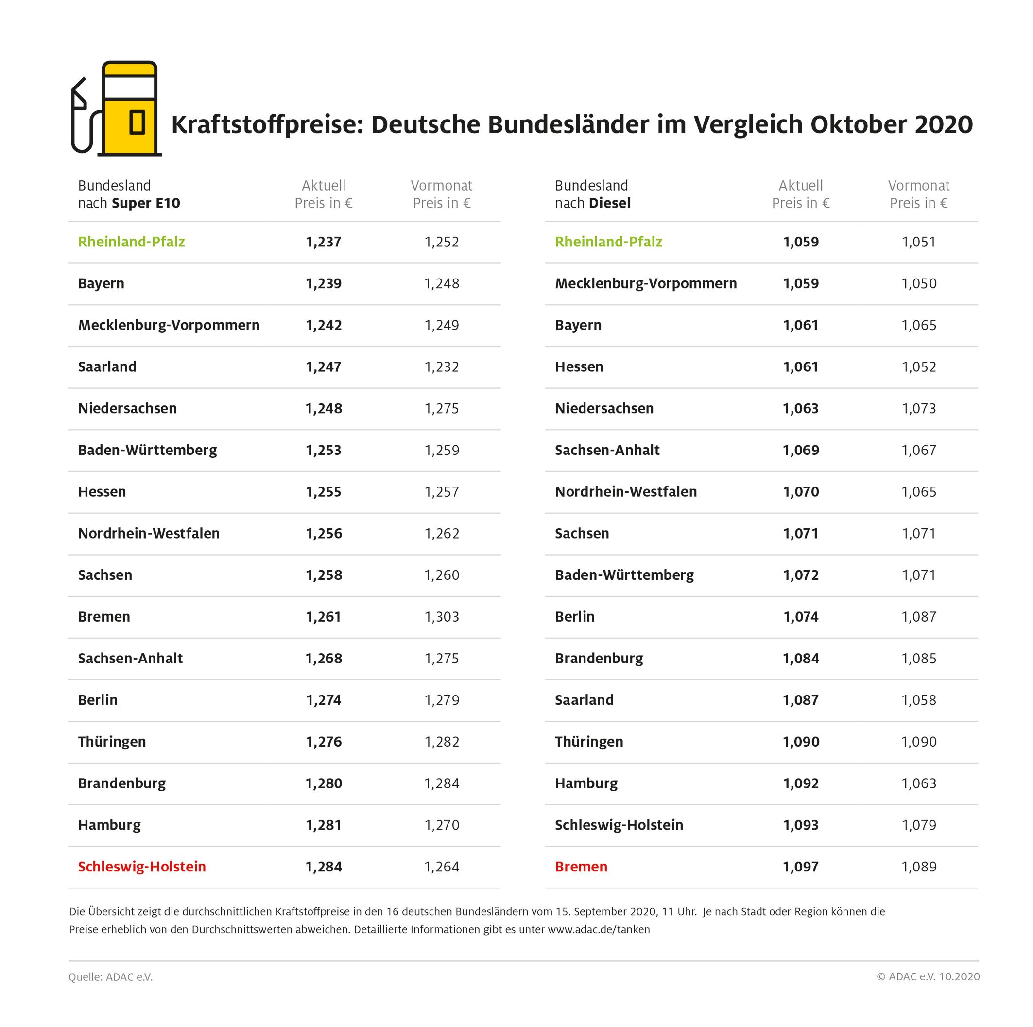 In der aktuellen Untersuchung hat der ADAC am Freitag um 11 Uhr die Preisdaten von mehr als 14.000 bei der Markttransparenzstelle erfassten Tankstellen ausgewertet und den Bundesländern zugeordnet. Die ermittelten Preise stellen eine Momentaufnahme dar. Unkomplizierte und schnelle Hilfe für preisbewusste Autofahrer bietet die Smartphone-App „ADAC Spritpreise“. Ausführliche Informationen rund um den Kraftstoffmarkt gibt es zudem unter www.adac.de/tanken.